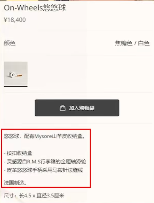 对此,爱马仕官方客服默示,该居品售价18400元,是近期推出的新品,经受皮革和马鞍针缝线手柄缱绻,收纳盒经受山羊皮,自然且珍稀。