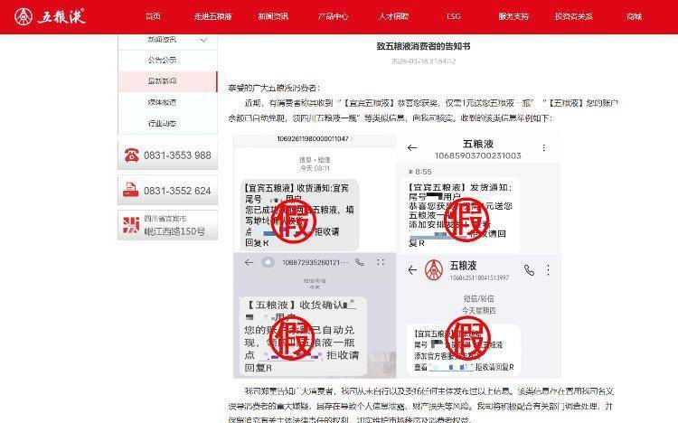 五粮液暗示,该类信息存在冒用五粮液步地误导消耗者的首要嫌疑,且存在导致个东说念主信息裸露、财产升天等风险。五粮液将积极和谐联系部门打听措置,并保留精致联系主体法律包袱的权柄,切实爱戴市集秩序及消耗者权益。